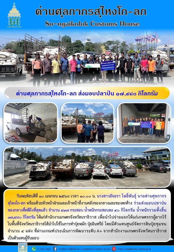 *** ด่านศุลกากรสุไหงโก-ลก ส่งมอบปลาป่น 17,480 กิโลกรัม ให้แก่สำนักงานเกษตรจังหวัดนราธิวาส ***