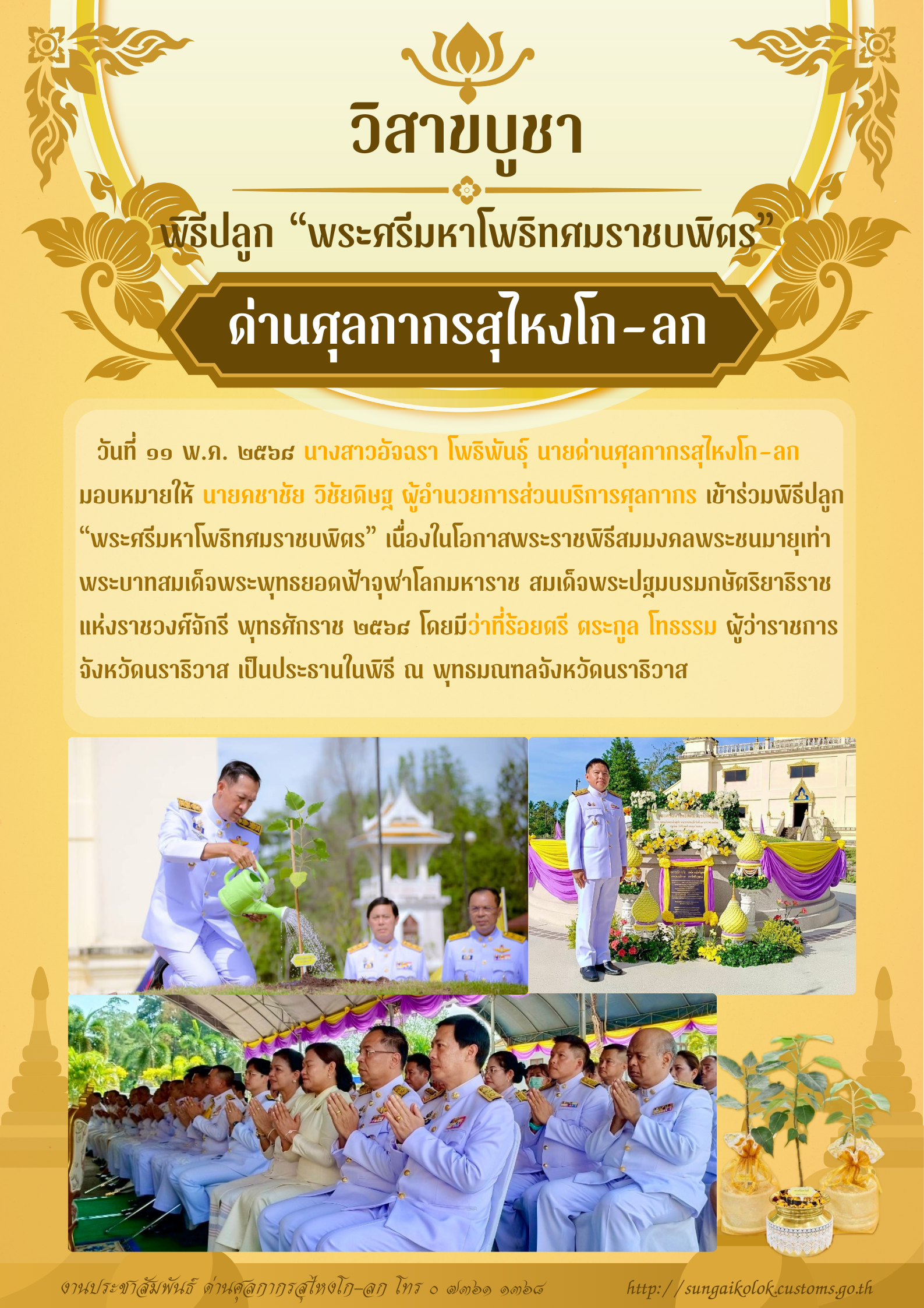*** ด่านศุลกากรสุไหงโก-ลก ร่วมพิธีปลูก พระศรีมหาโพธิทศมราชบพิตร ณ พุทธมณฑลจังหวัดนราธิวาส ***