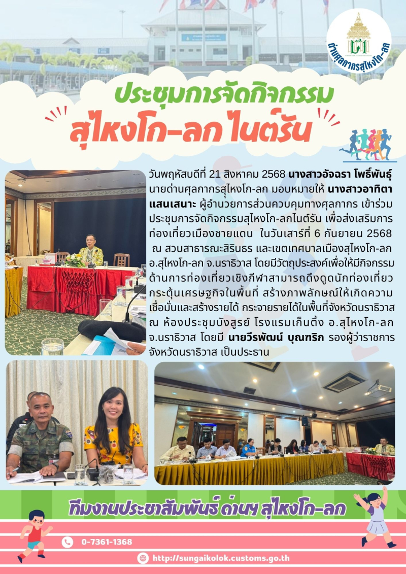 ด่านศุลกากรสุไหงโก-ลก เข้าร่วม ประชุมการจัดกิจกรรมสุไหงโก-ลกไนต์รัน เพื่อส่งเสริมการ ท่องเที่ยวเมืองชายแดน