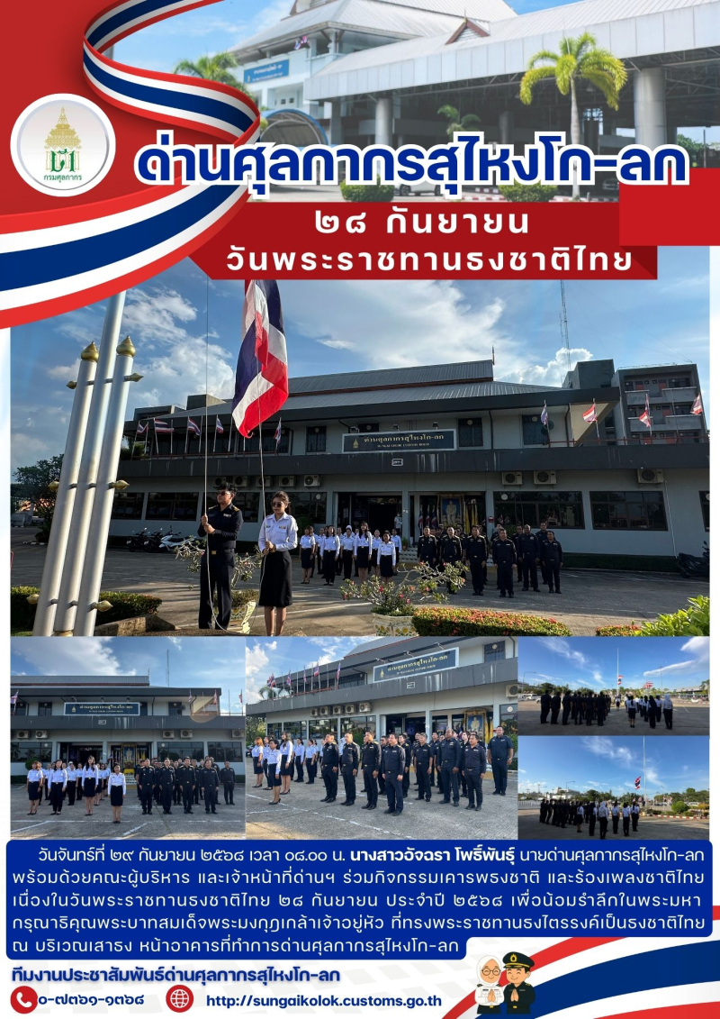 ***ด่านศุลกากรสุไหงโก-ลก จัดกิจกรรมเคารพธงชาติ เนื่องในวันพระราชทานธงชาติไทย ๒๘ กันยายน ประจำปี ๒๕๖๘***