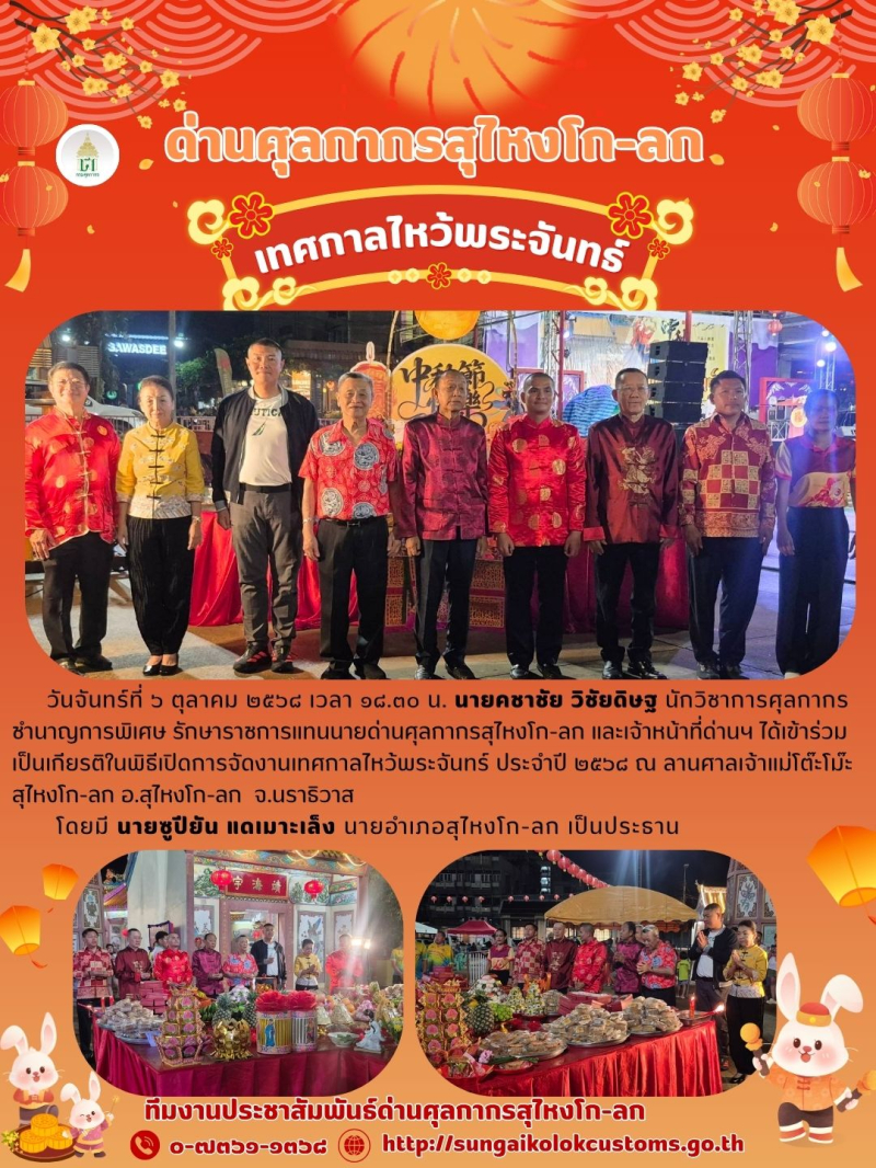 ***ด่านศุลกากรสุไหงโก-ลก เข้าร่วมเป็นเกียรติในพิธีเปิดการจัดงานเทศกาลไหว้พระจันทร์ ประจำปี ๒๕๖๘***