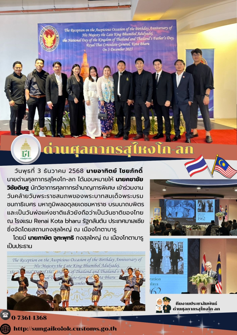 ด่านศุลกากรสุไหงโก-ลก เข้าร่วมงาน วันคล้ายวันพระราชสมภพของพระบาทสมเด็จพระบรม ชนกาธิเบศร มหาภูมิพลอดุลยเดชมหาราช บรมนาถบพิตร